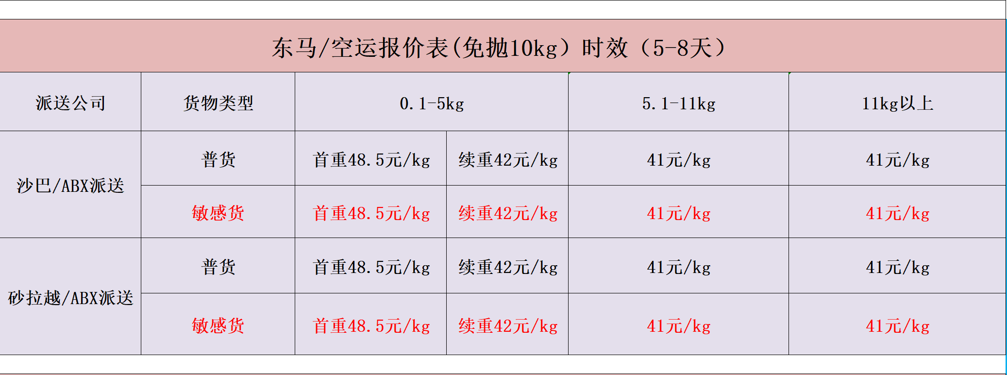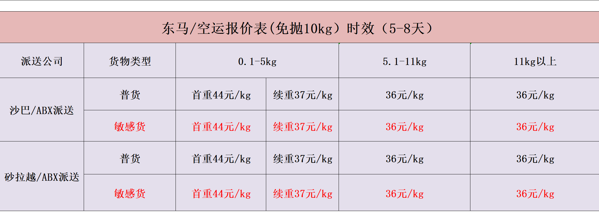 2、空运部分渠道按全抛计费:计算方式按实际重量与体积重量取大收费。