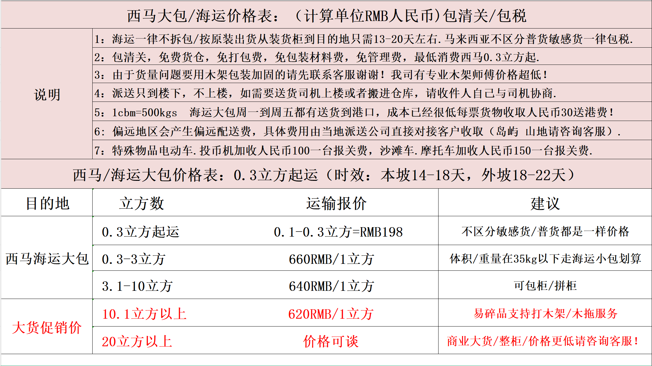 1、以上报价仅供参考,仓库在打包时会使用到耗材包装,实际体积/重量以仓库打包后为准。
